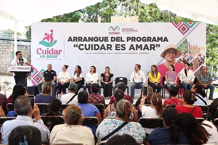 En Tuxtla Gutiérrez, el gobernador Eduardo Ramírez Aguilar encabezó el arranque del programa Cuidar es Amar, iniciativa que otorga apoyos económicos a personas que se dedican al cuidado de familiares dependientes, quienes no pueden valerse por sí mismos. Subrayó que esta acción reafirma el compromiso del gobierno de la Nueva ERA de impulsar políticas solidarias, con profundo sentido de empatía y humanismo, para atender a los sectores sociales que históricamente no habían sido tomados en cuenta.