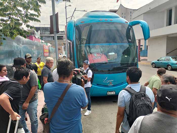 Los maestros se concentraron frente al parque Bicentenario, en la ciudad de Tapachula, posteriormente abordaron un autobús que los llevará al centro del país para apoyar en el paro nacional magisterial.