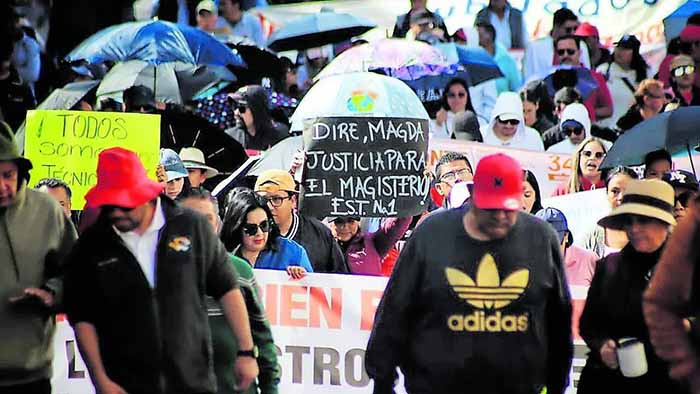 Tapachula, Chiapas; 14 de Noviembre de 2025.- Trabajadores de la educación activos, jubilados y administrativos marcharon este viernes por las principales calles de la Ciudad de Tapachula exigiendo la falta de cumplimiento a sus demandas. Partieron de la glorieta de Bonanza para culminar con un mitin en la explanada del parque central “Miguel Hidalgo”.