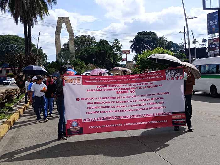 También solicitan una mesa de trabajo a nivel estatal y nacional, y reiteraron su rechazo a la reforma educativa y a la reforma del ISSTECH -2020. Los docentes también están demandando una jubilación justa de acuerdo a los años de servicio, y pagos de PRODET y cadena de cambios 2017.