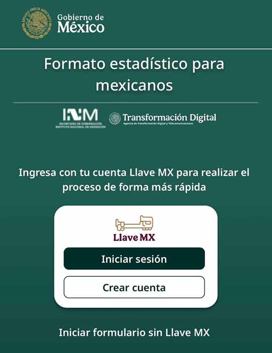 De esta manera, el Gobierno de México avanza, como lo instruyó la Presidenta Claudia Sheinbaum Pardo, en el desarrollo de nuevas tecnologías que permitan agilizar la gestión de las distintas dependencias, así como mejorar la atención que brindan a los ciudadanos y facilitar a los usuarios el cumplimiento de requisitos, como es, en este caso, el llenado del Formato Estadístico para Mexicanos en su versión digital.