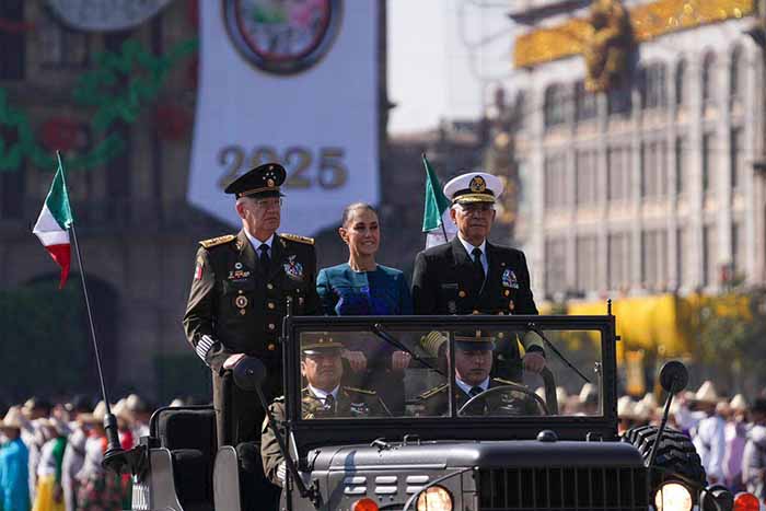 Ciudad de México; 20 de Noviembre de 2025.- Al encabezar el Desfile Cívico Militar Conmemorativo del 115 Aniversario de la Revolución Mexicana, la Presidenta Claudia Sheinbaum Pardo resaltó que la Cuarta Transformación está fuerte porque hay honestidad, resultados y amor al pueblo, por ello, puntualizó que quienes convocan a la violencia y a la intervención extranjera se equivocan, ya que el pueblo dice nunca más al racismo, al clasismo y a la discriminación, porque México avanza por la senda de la honestidad, de la paz, de la democracia y de la justicia.