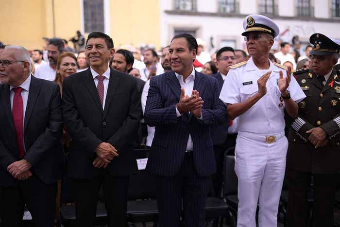 El gobernador Eduardo Ramírez Aguilar asistió a la presentación del Primer Informe de Gobierno de la mandataria de Veracruz, Rocío Nahle García, primera mujer en encabezar la gubernatura de esa entidad, a quien reconoció por el gran trabajo que realiza en beneficio de las veracruzanas y los veracruzanos.
