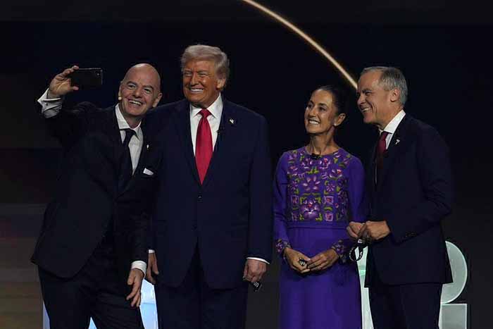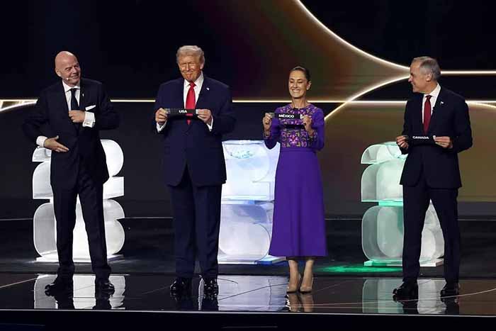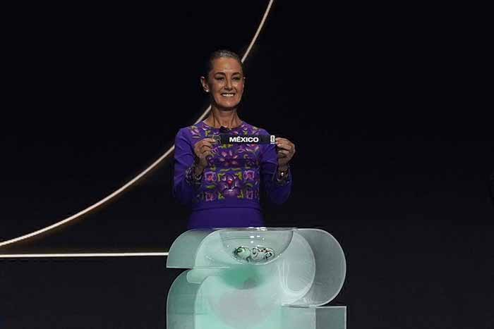 Washington, D. C., Estados Unidos, 5 de diciembre de 2025.- La Presidenta de México, Claudia Sheinbaum Pardo, participó en el Sorteo Copa Mundial FIFA 2026 en el que se definió que la Selección Mexicana será cabeza de serie del Grupo A y jugará contra las selecciones de Sudáfrica, Corea del Sur y el ganador de la eliminatoria de repechaje entre Dinamarca, Irlanda, Macedonia del Norte y República Checa.