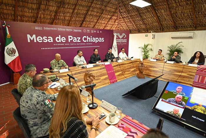 Con la presencia del secretario de Seguridad y Protección Ciudadana del Gobierno de México, Omar García Harfuch, el gobernador Eduardo Ramírez Aguilar encabezó la Mesa de Paz, espacio en el que agradeció el respaldo otorgado a Chiapas para hacer frente a la violencia.