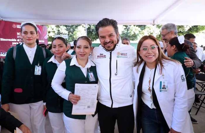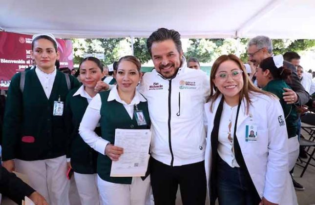 El gobernador Alfredo Ramírez Bedolla, felicitó a todo el personal médico que hoy recibe sus plazas, además agradeció a la Presidenta por las acciones en apoyo al pueblo michoacano con el Plan Michoacán por la Paz y la Justicia.