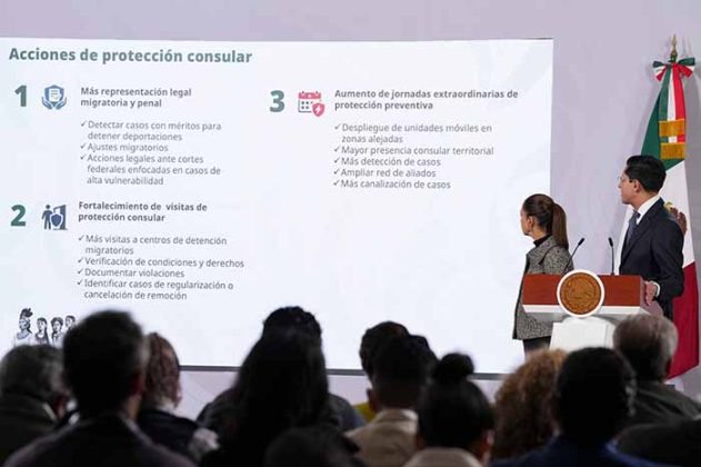 Agregó que, del 20 de enero al 15 de diciembre, 130 mil 364 personas repatriadas recibieron asistencia o protección consular; se realizaron 9 mil 322 visitas a centros de detención migratoria, con un promedio de 28 visitas al día en la que se otorgan 53 asesorías; 17 mil 355 asesorías legales externas; 3 mil 848 personas fueron canalizadas al Programa de Asesorías Legales Externas (PALE); en 33 casos se autorizaron recursos para alivios migratorios-fianzas por 146 mil dólares, se realizaron 75 repatriaciones médicas y desde el 1 de enero de 2025 se han brindado 5 millones de trámites en la red consular. Aunado a que se han otorgado a 35 mil personas asistencia consular en materia civil, administrativa y laboral. Boletín Oficial
