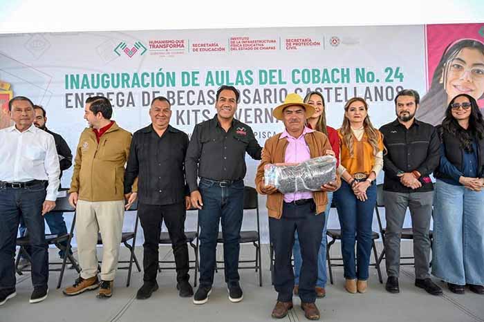 En otro momento, durante una visita al municipio de Teopisca, el gobernador inauguró espacios educativos en el Colegio de Bachilleres de Chiapas (Cobach), Plantel 24, además de entregar becas de alfabetización Rosario Castellanos y kits invernales en beneficio de familias en situación de vulnerabilidad. Señaló que estas acciones forman parte de un gobierno humanista que atiende de manera prioritaria las necesidades de la población y reafirmó su compromiso de gobernar con humildad, honestidad, autoridad moral y en unidad con el pueblo.