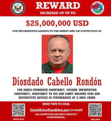 * La DEA Acusa a Diosdado Cabello de Narcoterrorismo, Conspiración Para Importar Cocaína y Usar y Portar Ametralladoras.