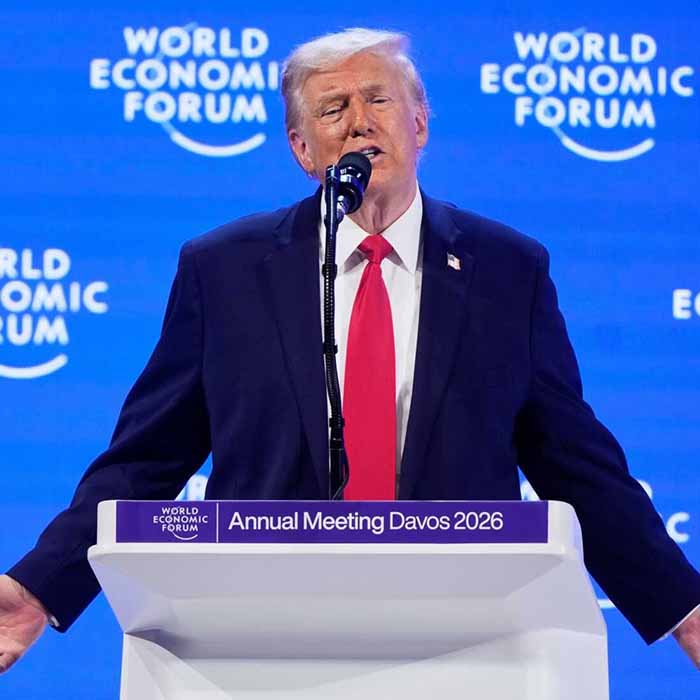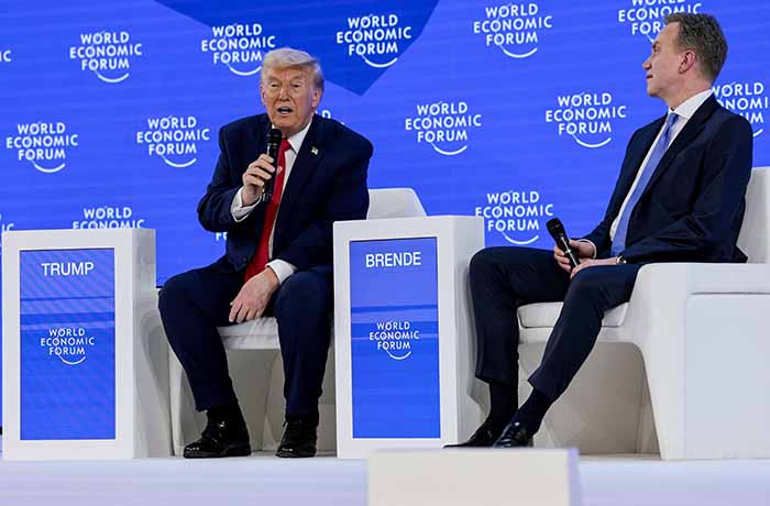 «No usaré la fuerza», declaró en su discurso de 72 minutos, provocando un suspiro de alivio en el mundo y en una abarrotada audiencia de jefes de Estado, multimillonarios y otros líderes mundiales, que habían guardado silencio cuando el magnate comenzó a mencionar la isla danesa. «Todo lo que Estados Unidos quiere es un lugar llamado Groenlandia», explicó, antes de llamarla «pedazo de hielo» y confundirla con Islandia.