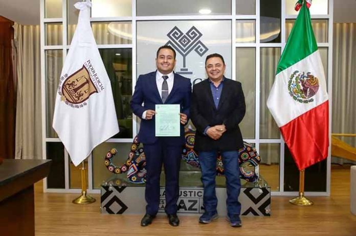 Tuxtla Gutiérrez, Chiapas.– En el marco de la salutación sostenida por el magistrado presidente del Poder Judicial del Estado de Chiapas, Juan Carlos Moreno Guillén, con las y los recién nombrados magistrados del Tribunal Superior de Justicia del Estado, resalta el nombramiento de Erick Raúl Zárate López, originario de Cacahoatán, quien asume esta nueva encomienda tras una destacada y amplia trayectoria dentro del Poder Judicial.