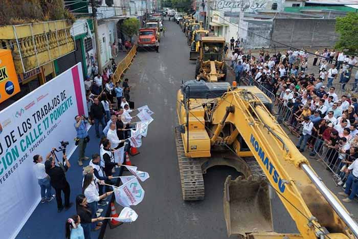 El gobernador Eduardo Ramírez Aguilar dio inicio a los trabajos de pavimentación y mejoramiento integral de la Calle 17 Poniente-Oriente, en Tapachula, con una inversión superior a 137 millones de pesos, en beneficio de 63 mil habitantes. Señaló que esta obra, considerada una de las más relevantes del gobierno de la Nueva ERA, contribuirá al embellecimiento de la imagen urbana y fortalecerá la movilidad, el desarrollo y la transformación de la Perla del Soconusco.