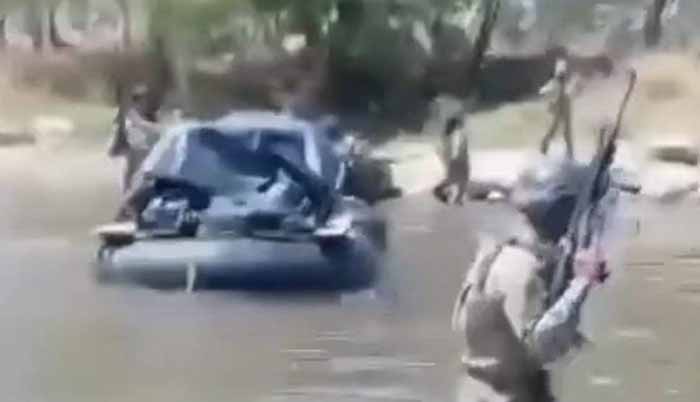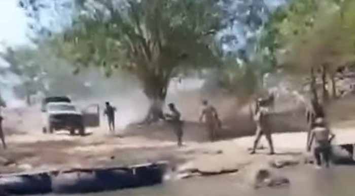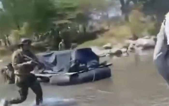 En el video también se aprecia que uno de los elementos realiza un disparo hacia la balsa, en el momento en que los civiles se repliegan.