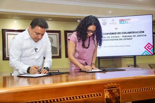 El convenio realizado en la Sala de Presidencia de la sede judicial en esta ciudad capital, fue encabezado y signado por el magistrado presidente del Poder Judicial, Juan Carlos Moreno Guillén y la magistrada presidenta del Tribunal de Justicia Administrativa, Edna Maritza Morales Bautista, quienes coincidieron en la importancia de avanzar hacia un modelo de justicia más ágil, accesible y cercano a la ciudadanía.