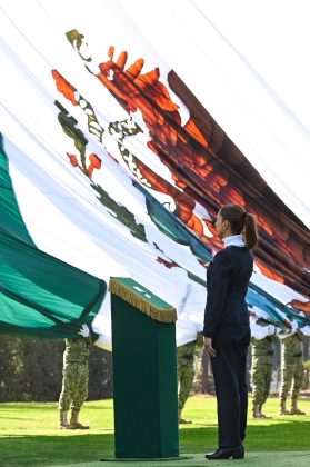 “Así, la bandera mexicana integra tres dimensiones: nuestra raíz indígena, la emancipación colonial y la consolidación del México independiente. Es un símbolo de continuidad histórica y de transformación política. Cuando ondea, no sólo representa a un territorio, encarna siglos de resistencia y de transformación. Es memoria colectiva y proyecto futuro al mismo tiempo”, agregó.