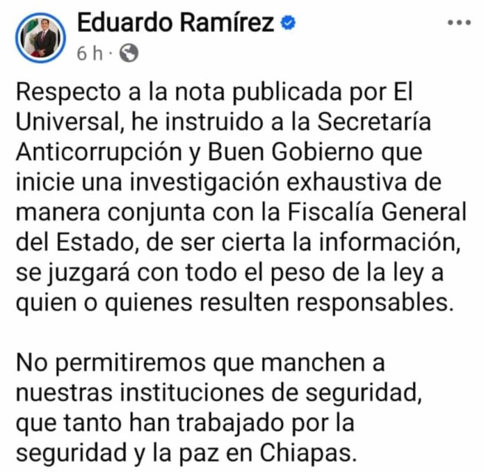 “No permitiremos que manchen a nuestras instituciones de seguridad, que tanto han trabajado por la seguridad y la paz en Chiapas.”