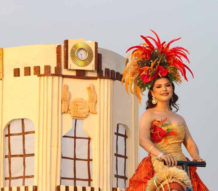 El Recorrido fue Encabezado por el Carro Alegórico de Maylen I, Reina de la EFT 202