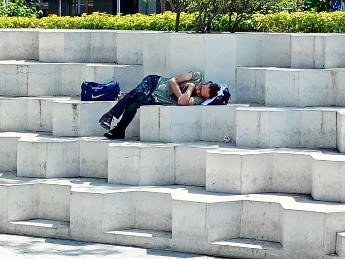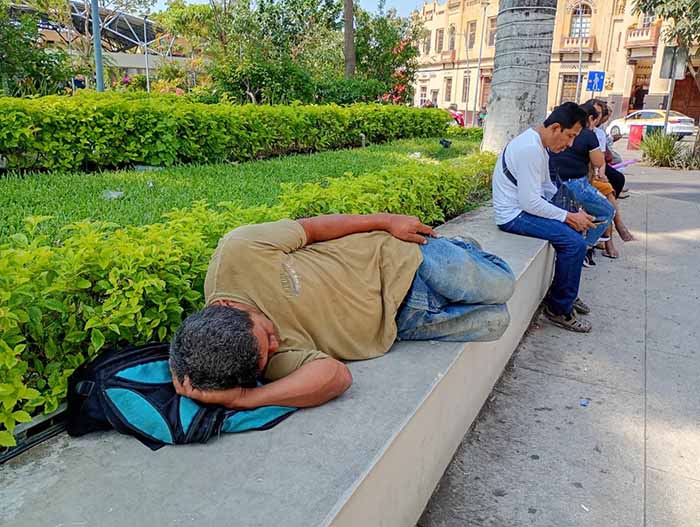 Migrantes Acaparan Bancas, Jardineras, Parques y Hasta Fuentes en el Centro de la Ciudad