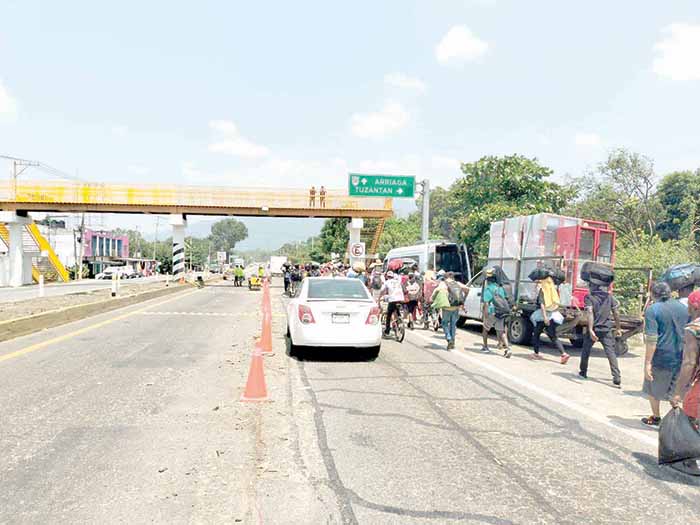 Huixtla, Chiapas, 25 de marzo de 2026.– Cientos de migrantes de diversas nacionalidades recorren ya la costa de Chiapas, luego de haber salido de Tapachula la noche del martes, con el objetivo de llegar al centro del país, donde esperan recibir una mejor atención por parte de las autoridades migratorias.