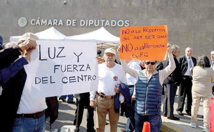Jubilados de Pemex, Luz y Fuerza y CFE Protestan en San Lázaro