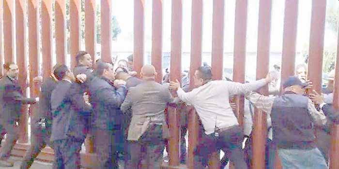 Los inconformes, quiénes exigen que se dé marcha atrás a la denominada reforma de «pensiones doradas», derribaron las vallas, y golpearon con sartenes al personal de resguardo que intentó contenerlos.