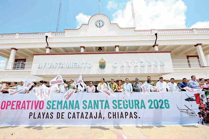 Desde el municipio de Catazajá, el gobernador Eduardo Ramírez Aguilar puso en marcha el Operativo Semana Santa Segura 2026, donde destacó que las Fuerzas Armadas y las instituciones que integran el Gabinete de Seguridad desplegarán una amplia fuerza de tarea en las distintas regiones del estado, con el propósito de prevenir riesgos y garantizar la seguridad de las familias, así como de quienes visiten los destinos turísticos de Chiapas.