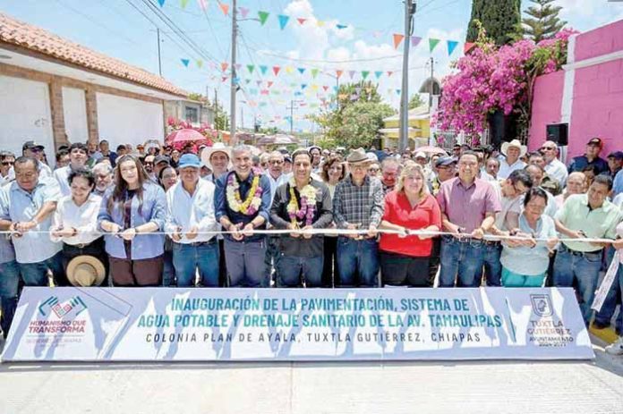 El gobernador Eduardo Ramírez Aguilar acompañó al alcalde de Tuxtla Gutiérrez, Angel Torres Culebro, a la inauguración de la pavimentación y el mejoramiento integral del sistema de agua potable y drenaje sanitario de la Avenida Tamaulipas, en la colonia Plan de Ayala, donde reafirmó el compromiso del gobierno de la Nueva ERA de trabajar en unidad para impulsar la prosperidad de la capital chiapaneca.