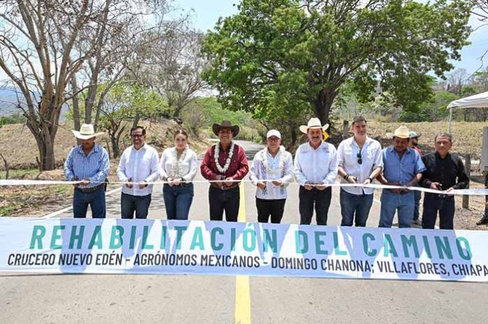 El gobernador Eduardo Ramírez Aguilar inauguró la rehabilitación del camino Crucero Nuevo Edén-Agrónomos Mexicanos-Domingo Chanona, en el municipio de Villaflores, una obra que representó una inversión superior a 19 millones de pesos y beneficiará a casi 20 mil habitantes. Destacó que la modernización de esta vía fortalecerá la conectividad y dinamizará las actividades sociales, comerciales y productivas entre la región Frailesca y otras zonas de Chiapas.