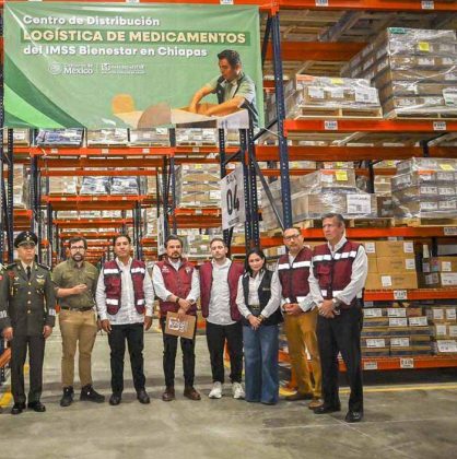 El gobernador Eduardo Ramírez Aguilar, junto al director general del IMSS Bienestar, Alejandro Svarch Pérez, encabezó la reunión de evaluación sobre los avances en la consolidación del Servicio Universal de Salud en Chiapas y realizó un recorrido por las instalaciones del Centro de Distribución Logística de Medicamentos del IMSS Bienestar, espacio que fortalecerá la red de abasto en la entidad, permitiendo que las y los chiapanecos reciban atención de calidad y que puedan tener sus tratamientos completos.