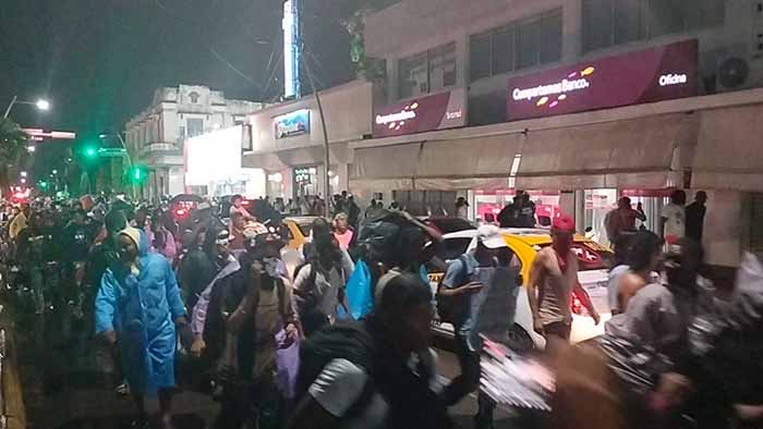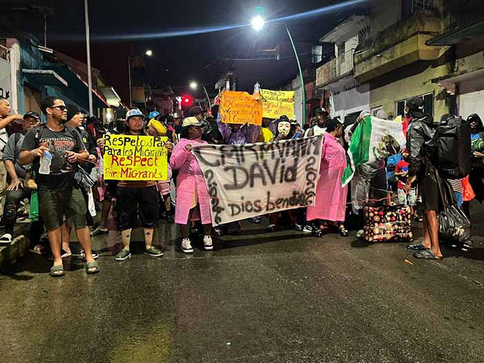Tapachula, Chiapas; 20 de Abril de 2026.- Ni la intensa lluvia que se registró la tarde de este lunes frenó la salida de cientos de personas migrantes que, en caravana, partieron desde el Parque Bicentenario con la intención de avanzar hacia la Carretera Costera y continuar su ruta hacia la Ciudad de México y otras entidades del país.