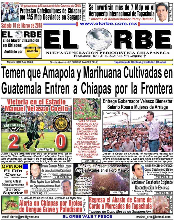 InicioPortadasMARZO 10 DE 2018 Portadas MARZO 10 DE 2018 10 marzo, 2018 0 1874 Cuota FacebookTwitterPinterestWhatsAppEmail EDICION IMPRESA PARA VER LA EDICION IMPRESA PULSE EN LA IMAGEN DE ABAJO Cuota FacebookTwitterPinterestWhatsAppEmail Artículo anteriorLa Familia Derrota a DemocraciaArtículo siguienteCafetaleros Visitan al Atlético Ixtepec RELATED ARTICLES Portadas DICIEMBRE 18 DE 2025 18 diciembre, 2025 Portadas DICIEMBRE 17 DE 2025 17 diciembre, 2025 Portadas DICIEMBRE 16 DE 2025 16 diciembre, 2025 EL ORBE AL MOMENTO: Recorrido por el malecón en la colonia Obrera: Yamil Melgar Al Instante staff - 18 diciembre, 2025 0 El presidente municipal Yamil Melgar, junto a los secretarios de Seguridad Pública y SEDURBE, llevó a cabo un recorrido por el malecón en la... Leer más Conferencia de prensa matutina. Jueves 18 de diciembre 2025 | Presidenta Claudia Sheinbaum Pardo Al Instante staff - 18 diciembre, 2025 0 Te invitamos a seguir la transmisión en vivo de la conferencia matutina: #MañaneradelPueblo, encabezada por la Dra. Claudia Sheinbaum Pardo, Presidenta Constitucional de los... Leer más ¡Gran Final hoy el Campo Córdova Uno! Al Instante staff - 18 diciembre, 2025 0 Tapachula, Chiapas.-Hoy en punto de las 15:30 horas, se jugará la gran final del Torneo Decembrino 2025, en el campo Córdova Uno, en la... Leer más Cargar más MAS Popular Recorrido por el malecón en la colonia Obrera: Yamil Melgar 18 diciembre, 2025 México se Mantiene Entre los Mayores Exportadores de Alimentos 18 diciembre, 2025 Mexicanos Gastarán 4 mil Pesos en Cena Navideña Este 2025 18 diciembre, 2025 Conferencia de prensa matutina. Jueves 18 de diciembre 2025 | Presidenta Claudia Sheinbaum Pardo 18 diciembre, 2025 Cargar más
