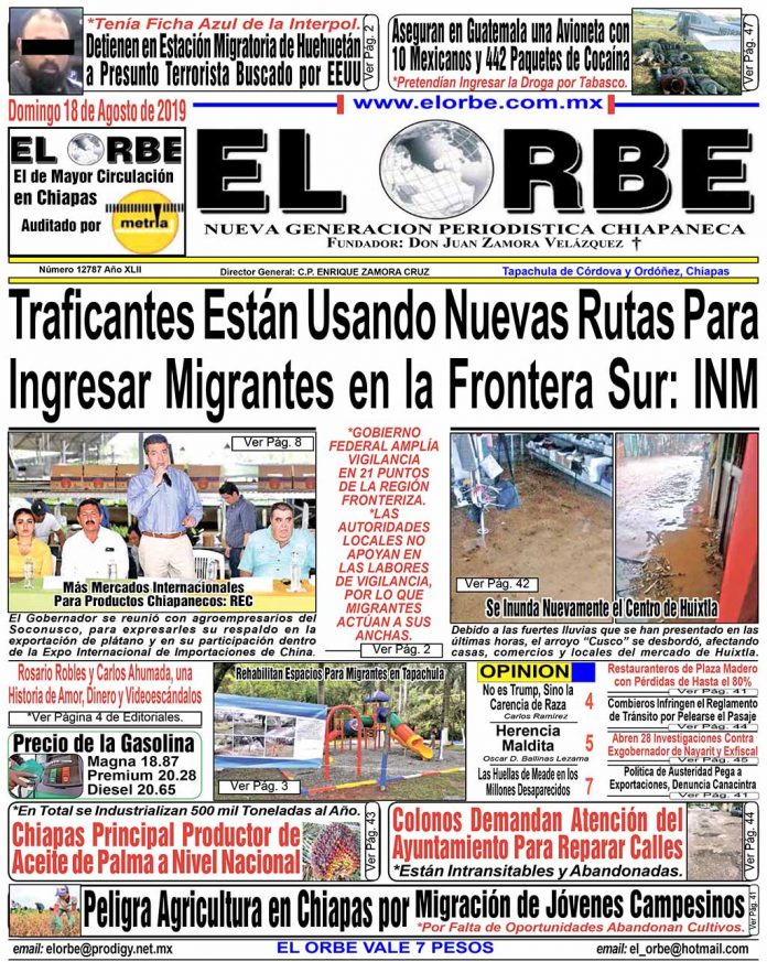 InicioPortadasAGOSTO 18 DE 2019 Portadas AGOSTO 18 DE 2019 18 agosto, 2019 0 1401 Cuota FacebookTwitterPinterestWhatsAppEmail Cuota FacebookTwitterPinterestWhatsAppEmail Artículo anteriorLa palma de aceite, único cultivo que eleva su expectativa de crecimiento económico en Chiapas, al aumentar del 5 al 50% su producción en los últimos años.Artículo siguientePolítica de Austeridad Pega a Exportaciones, Denuncia Canacintra RELATED ARTICLES Portadas DICIEMBRE 08 DE 2025 8 diciembre, 2025 Portadas DICIEMBRE 07 DE 2025 7 diciembre, 2025 Portadas DICIEMBRE 06 DE 2025 6 diciembre, 2025 EL ORBE AL MOMENTO: Muere empleado dentro de estacionamiento vehicular al oriente de Tapachula. Al Instante staff - 8 diciembre, 2025 0 Muere empleado dentro de estacionamiento vehicular al oriente de Tapachula. Tapachula, Chiapas a 08 de diciembre 2025.- La mañana de este lunes se registró... Leer más Atiende Cruz Roja a persona desmayada en tienda de ropa. Al Instante staff - 8 diciembre, 2025 0 La tienda se encuentra ubicada en el sendero peatonal de Tapachula, Chiapas. Leer más Comerciantes del mercado Sebastián solicitan la instalación del Tianguis Navideño Al Instante staff - 8 diciembre, 2025 0 Comerciantes del mercado Sebastián solicitan la instalación del Tianguis Navideño ELORBE/ Nelson Bautista. Leer más Cargar más MAS Popular Muere empleado dentro de estacionamiento vehicular al oriente de Tapachula. 8 diciembre, 2025 Atiende Cruz Roja a persona desmayada en tienda de ropa. 8 diciembre, 2025 Comerciantes del mercado Sebastián solicitan la instalación del Tianguis Navideño 8 diciembre, 2025 En Chiapas Vivimos en Paz: Eduardo Ramírez 8 diciembre, 2025 Cargar más