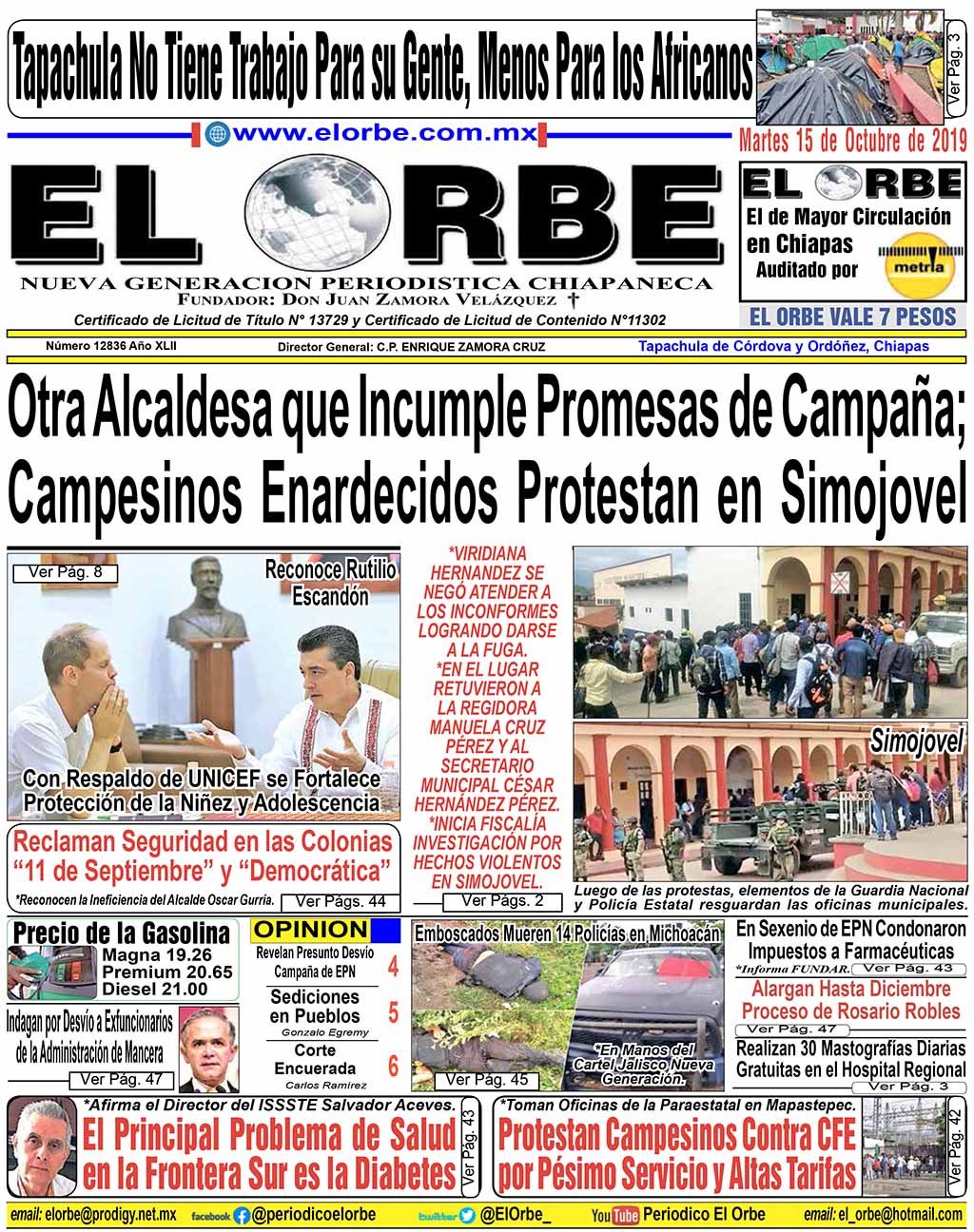 InicioPortadasOCTUBRE 15 DE 2019 Portadas OCTUBRE 15 DE 2019 15 octubre, 2019 0 1621 Cuota FacebookTwitterPinterestWhatsAppEmail Cuota FacebookTwitterPinterestWhatsAppEmail Artículo anteriorEmboscados Mueren 14 Policías en MichoacánArtículo siguiente«ESTRATEGIA DE CLASE MUNDIAL» RELATED ARTICLES Portadas DICIEMBRE 18 DE 2025 18 diciembre, 2025 Portadas DICIEMBRE 17 DE 2025 17 diciembre, 2025 Portadas DICIEMBRE 16 DE 2025 16 diciembre, 2025 EL ORBE AL MOMENTO: Ya hay fecha! Al Instante staff - 18 diciembre, 2025 0 Leer más Nada que Celebrar en el Día Internacional del Migrante: Activista Al Instante staff - 18 diciembre, 2025 0 Tapachula, Chiapas 18 de Diciembre del 2025.- En el Día Internacional del Migrante, el activista Luis García Villagrán lanzó un fuerte llamado desde la... Leer más VEHÍCULO ROBADO Al Instante staff - 18 diciembre, 2025 0 🚨 VEHÍCULO ROBADO 🚨 Solicitamos el apoyo para localizar vehículo robado recientemente. 🚗 Marca/Modelo: Nissan Tsuru Sedan 4 Puertas 🎨 Color: Plata 🔢 Placas: DRD-978 📍 Lugar del... Leer más Cargar más MAS Popular Ya hay fecha! 18 diciembre, 2025 Nada que Celebrar en el Día Internacional del Migrante: Activista 18 diciembre, 2025 VEHÍCULO ROBADO 18 diciembre, 2025 Advierten de Posible Colapso de Puente 18 diciembre, 2025 Cargar más