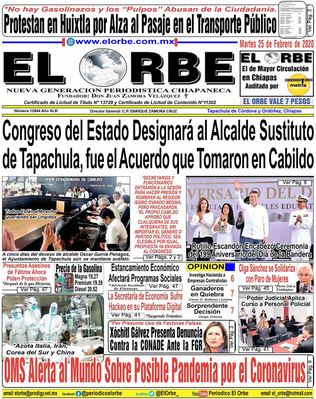 InicioPortadasFEBRERO 25 DE 2020 Portadas FEBRERO 25 DE 2020 25 febrero, 2020 0 1207 Cuota FacebookTwitterPinterestWhatsAppEmail Cuota FacebookTwitterPinterestWhatsAppEmail Artículo anteriorAún no hay alcalde en Tapachula… regidores acuerdan que el Congreso del Estado sea quien designe al sustituto del recién fallecido presidente municipal.Artículo siguienteQué es el Fakeminismo RELATED ARTICLES Portadas DICIEMBRE 18 DE 2025 18 diciembre, 2025 Portadas DICIEMBRE 17 DE 2025 17 diciembre, 2025 Portadas DICIEMBRE 16 DE 2025 16 diciembre, 2025 EL ORBE AL MOMENTO: Conferencia de prensa matutina. Jueves 18 de diciembre 2025 | Presidenta Claudia Sheinbaum Pardo Al Instante staff - 18 diciembre, 2025 0 Te invitamos a seguir la transmisión en vivo de la conferencia matutina: #MañaneradelPueblo, encabezada por la Dra. Claudia Sheinbaum Pardo, Presidenta Constitucional de los... Leer más ¡Gran Final hoy el Campo Córdova Uno! Al Instante staff - 18 diciembre, 2025 0 Tapachula, Chiapas.-Hoy en punto de las 15:30 horas, se jugará la gran final del Torneo Decembrino 2025, en el campo Córdova Uno, en la... Leer más María Ruth De la Cruz, Celebra su 61 Aniversario con Carrera Deportiva Al Instante staff - 18 diciembre, 2025 0 La maestra y atleta María Ruth De la Cruz Navarro, celebró la llegada de su 61 aniversario de una manera especial, llena de entusiasmo,... Leer más Cargar más MAS Popular México se Mantiene Entre los Mayores Exportadores de Alimentos 18 diciembre, 2025 Mexicanos Gastarán 4 mil Pesos en Cena Navideña Este 2025 18 diciembre, 2025 Conferencia de prensa matutina. Jueves 18 de diciembre 2025 | Presidenta Claudia Sheinbaum Pardo 18 diciembre, 2025 Denuncian Altas Tarifas de Taxistas en Tapachula; Usuarios Pagan de 100 Pesos Para Arriba por Corrida 18 diciembre, 2025 Cargar más
