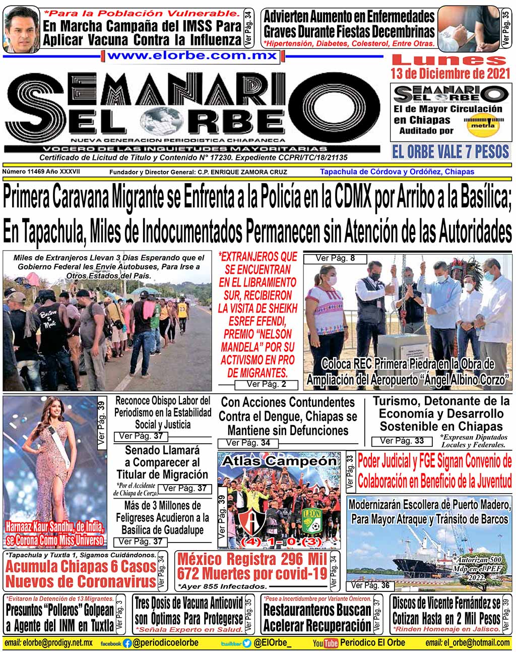 InicioPortadasDICIEMBRE 13 DE 2021 Portadas DICIEMBRE 13 DE 2021 13 diciembre, 2021 0 1094 Cuota FacebookTwitterPinterestWhatsAppEmail Cuota FacebookTwitterPinterestWhatsAppEmail Artículo anteriorDiscos de Vicente Fernández se Cotizan Hasta en 2 Mil PesosArtículo siguienteEl Atlas es Campeón de La Liga Mx RELATED ARTICLES Portadas DICIEMBRE 18 DE 2025 18 diciembre, 2025 Portadas DICIEMBRE 17 DE 2025 17 diciembre, 2025 Portadas DICIEMBRE 16 DE 2025 16 diciembre, 2025 EL ORBE AL MOMENTO: Conferencia de prensa matutina. Jueves 18 de diciembre 2025 | Presidenta Claudia Sheinbaum Pardo Al Instante staff - 18 diciembre, 2025 0 Te invitamos a seguir la transmisión en vivo de la conferencia matutina: #MañaneradelPueblo, encabezada por la Dra. Claudia Sheinbaum Pardo, Presidenta Constitucional de los... Leer más ¡Gran Final hoy el Campo Córdova Uno! Al Instante staff - 18 diciembre, 2025 0 Tapachula, Chiapas.-Hoy en punto de las 15:30 horas, se jugará la gran final del Torneo Decembrino 2025, en el campo Córdova Uno, en la... Leer más María Ruth De la Cruz, Celebra su 61 Aniversario con Carrera Deportiva Al Instante staff - 18 diciembre, 2025 0 La maestra y atleta María Ruth De la Cruz Navarro, celebró la llegada de su 61 aniversario de una manera especial, llena de entusiasmo,... Leer más Cargar más MAS Popular México se Mantiene Entre los Mayores Exportadores de Alimentos 18 diciembre, 2025 Mexicanos Gastarán 4 mil Pesos en Cena Navideña Este 2025 18 diciembre, 2025 Conferencia de prensa matutina. Jueves 18 de diciembre 2025 | Presidenta Claudia Sheinbaum Pardo 18 diciembre, 2025 Denuncian Altas Tarifas de Taxistas en Tapachula; Usuarios Pagan de 100 Pesos Para Arriba por Corrida 18 diciembre, 2025 Cargar más
