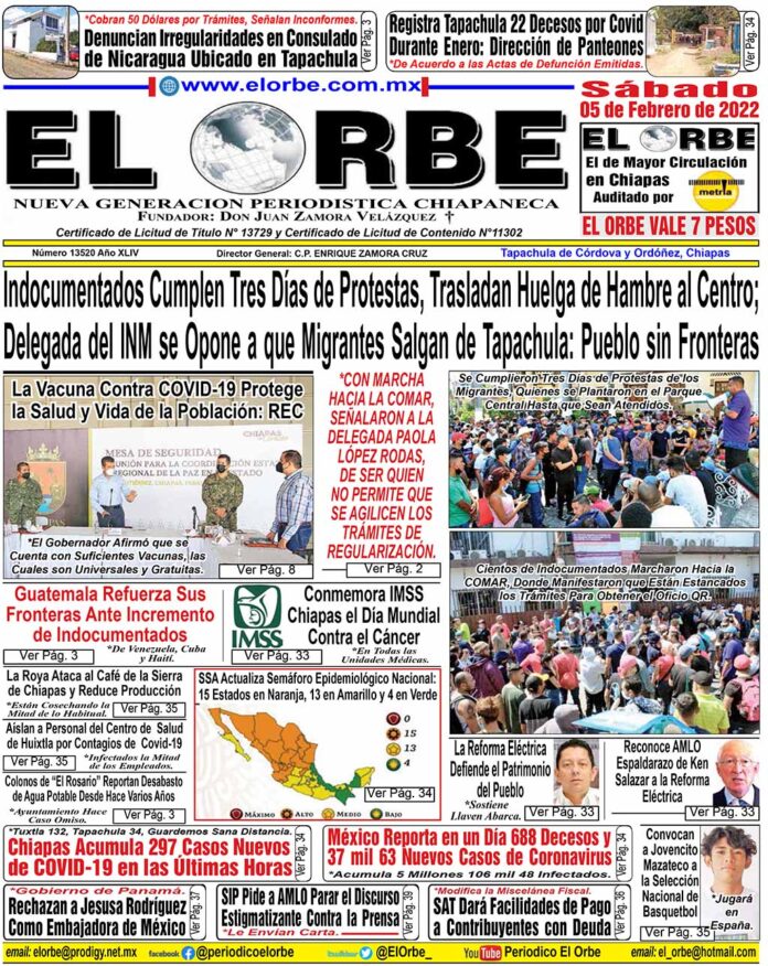 InicioPortadasFEBRERO 05 DE 2022 Portadas FEBRERO 05 DE 2022 5 febrero, 2022 0 981 Cuota FacebookTwitterPinterestWhatsAppEmail Cuota FacebookTwitterPinterestWhatsAppEmail Artículo anteriorMéxico Reporta en un Día 688 Decesos y 37 mil 63 Nuevos Casos de CoronavirusArtículo siguienteVuelca Camión de Volteo RELATED ARTICLES Portadas ENERO 12 DE 2025 12 enero, 2026 Portadas ENERO 11 DE 2026 11 enero, 2026 Portadas ENERO 10 DE 2026 10 enero, 2026 EL ORBE AL MOMENTO: «EN TAPACHULA LA NIÑEZ TRANSFORMA»: YAMIL MELGAR. Al Instante staff - 12 enero, 2026 0 •Premian a ganadores del Primer Concurso de Dibujo "Calles Limpias y Seguras". Leer más Eduardo Ramírez atestigua Asamblea del Pueblo en San Juan Cancuc y fortalece acciones prioritarias Al Instante staff - 12 enero, 2026 0 La población eligió de forma libre y democrática la realización de una obra de electrificación Benefició a mil 722 niñas y niños con calzado deportivo... Leer más Entrevista con la Maestra Viridiana Figueroa García , Directora General del COBACH Al Instante staff - 12 enero, 2026 0 En Tapachula, llevamos a cabo la inauguración de obras en el Cobach y en la Escuela Secundaria Técnica Pesquera Número 72. Hemos beneficiado a... Leer más Cargar más MAS Popular «EN TAPACHULA LA NIÑEZ TRANSFORMA»: YAMIL MELGAR. 12 enero, 2026 Eduardo Ramírez atestigua Asamblea del Pueblo en San Juan Cancuc y fortalece acciones prioritarias 12 enero, 2026 Entrevista con la Maestra Viridiana Figueroa García , Directora General del COBACH 12 enero, 2026 Mujeres víctimas de violencia contarán con botón de alerta conectado al C5: Llaven Abarca 12 enero, 2026 Cargar más