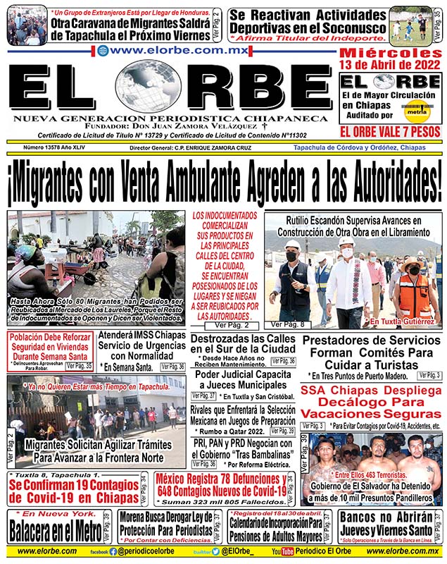 InicioPortadasABRIL 13 DE 2022 Portadas ABRIL 13 DE 2022 13 abril, 2022 0 1513 Cuota FacebookTwitterPinterestWhatsAppEmail Cuota FacebookTwitterPinterestWhatsAppEmail Artículo anteriorAMLO y Rutilio Escandón Fortalecen Acciones de Salud PublicaArtículo siguienteParticipan en Miss Piel Dorada Internacional RELATED ARTICLES Portadas DICIEMBRE 05 DE 2025 5 diciembre, 2025 Portadas DICIEMBRE 04 DE 2025 4 diciembre, 2025 Portadas DICIEMBRE 03 DE 2025 3 diciembre, 2025 EL ORBE AL MOMENTO: Nestlé México reafirma su compromiso con la caficultura mexicana Al Instante staff - 5 diciembre, 2025 0 - La empresa propietaria de la marca NESCAFÉ confirma que los precios promedio para la compra de café verde robusta durante la cosecha 2025 -... Leer más Comerciantes del centro de Tapachula acudieron al Palacio Municipal. Al Instante staff - 5 diciembre, 2025 0 Por la mañana de este viernes 5 de diciembre, comerciantes del centro de Tapachula acudieron al palacio municipal para intentar dialogar con autoridades municipales... Leer más La agrupacion de empresarios Miguel Hidalgo A.C Tapachula dicen no al Tianguis Navideño Al Instante staff - 5 diciembre, 2025 0 La agrupacion de empresarios Miguel Hidalgo A.C Tapachula dicen no al Tianguis Navideño. Ni en parques Benito Juárez ni en calles del centro de... Leer más Cargar más MAS Popular Nestlé México reafirma su compromiso con la caficultura mexicana 5 diciembre, 2025 Comerciantes del centro de Tapachula acudieron al Palacio Municipal. 5 diciembre, 2025 La agrupacion de empresarios Miguel Hidalgo A.C Tapachula dicen no al Tianguis Navideño 5 diciembre, 2025 Poder Judicial del Estado impone sentencia a responsables de Homicidio Calificado 5 diciembre, 2025 Cargar más