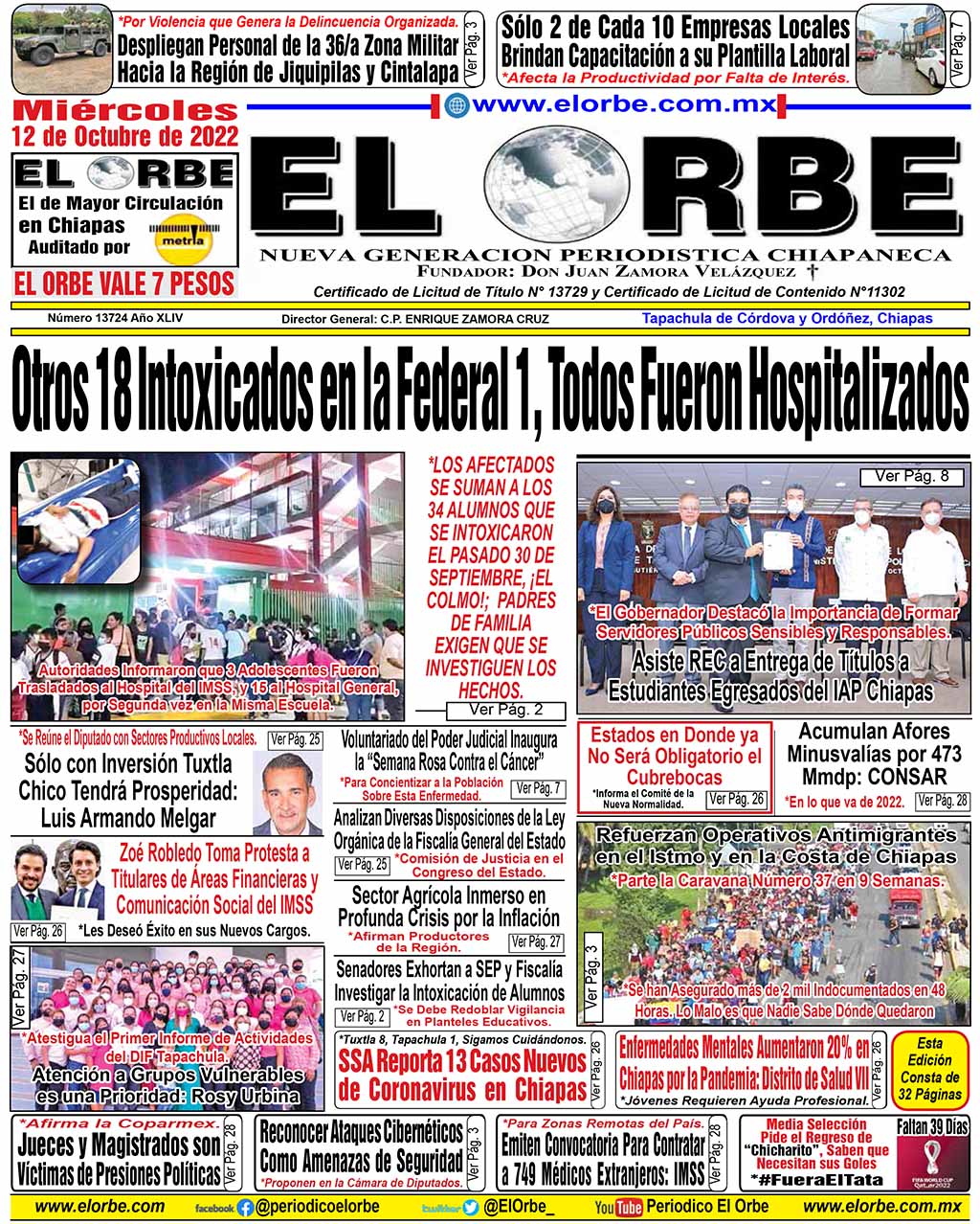 InicioPortadasOCTUBRE 12 DE 2022 Portadas OCTUBRE 12 DE 2022 12 octubre, 2022 0 889 Cuota FacebookTwitterPinterestWhatsAppEmail Cuota FacebookTwitterPinterestWhatsAppEmail Artículo anteriorZoé Robledo Toma Protesta a Titulares de Áreas Financieras y Comunicación Social del IMSSArtículo siguienteAsí Quedó Alfredo Adame Tras Cirugía RELATED ARTICLES Portadas DICIEMBRE 19 DE 2025 19 diciembre, 2025 Portadas DICIEMBRE 18 DE 2025 18 diciembre, 2025 Portadas DICIEMBRE 17 DE 2025 17 diciembre, 2025 EL ORBE AL MOMENTO: MÉXICO: UN PAÍS CAFETALERO DE RELEVANCIA GLOBAL Al Instante staff - 19 diciembre, 2025 0 Desde hace más de un siglo, el café forma parte de nuestra identidad cultural y productiva, consolidándose como un motor económico y social para... Leer más Piden Ser Tomados en Cuenta en Programa de Obras 2026 en Unión Miramar Al Instante staff - 19 diciembre, 2025 0 • Administraciones municipales pasadas no les cumplieron y urge la atención al acceso a la comunidad. Tapachula Chiapas 19 de diciembre 2025.- Ante el grave deterioro... Leer más Habitantes de la Colonia Olimpia Exigen Fumigación Ante Incremento del Mosco Transmisor del dengue Al Instante staff - 19 diciembre, 2025 0 *El foco de infección es un dren pluvial de aguas negras que atraviesa la colonia. Tapachula, Chiapas; 19 de diciembre de 2025. Habitantes de la... Leer más Cargar más MAS Popular MÉXICO: UN PAÍS CAFETALERO DE RELEVANCIA GLOBAL 19 diciembre, 2025 Piden Ser Tomados en Cuenta en Programa de Obras 2026 en Unión Miramar 19 diciembre, 2025 Habitantes de la Colonia Olimpia Exigen Fumigación Ante Incremento del Mosco Transmisor del dengue 19 diciembre, 2025 #MañaneraDelPueblo desde Palacio Nacional. Viernes 19 de diciembre 2025 19 diciembre, 2025 Cargar más