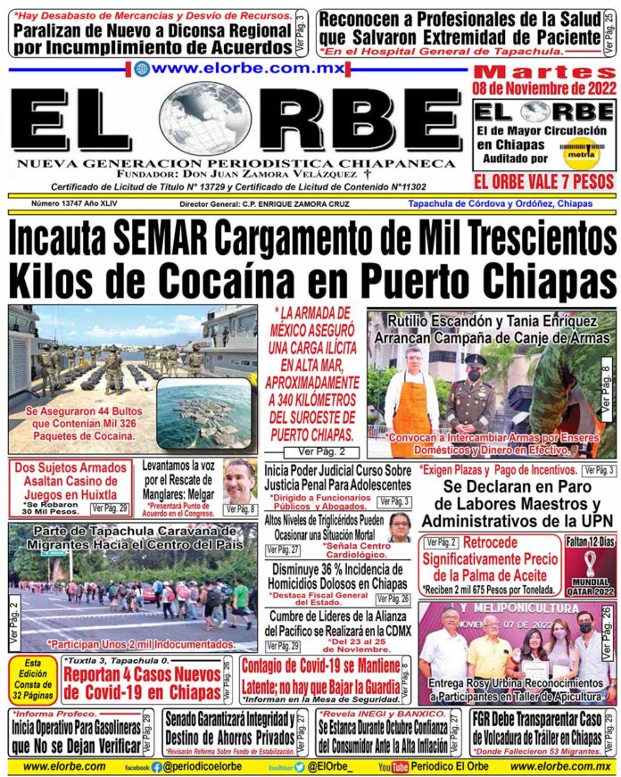 InicioPortadasNOVIEMBRE 08 DE 2022 Portadas NOVIEMBRE 08 DE 2022 8 noviembre, 2022 0 1348 Cuota FacebookTwitterPinterestWhatsAppEmail Cuota FacebookTwitterPinterestWhatsAppEmail Artículo anteriorEL ORBE AL MOMENTO Luego de varios días de permanecer varados en Tapachula en espera de reunir el mayor número de participantes, en las primeras horas de este lunes partieron unos 2 mil migrantes hacia el centro del país. La mayoría de ellos son venezolanos que dijeron huyen de la dictadura de su presidente, Nicolás Maduro, la corrupción, inseguridad, desabasto de alimentos, desempleo y la violación permanente de las garantías individuales. Algunos buscan quedarse a vivir en México y otros llegar a los Estados Unidos para solicitar refugio político. Este día planean caminar unos 50 kilómetros para llegar al municipio de Huixtla, en la Costa de Chiapas.Artículo siguienteFGR Debe Transparentar Caso de Volcadura de Tráiler en Chiapas RELATED ARTICLES Portadas DICIEMBRE 12 DE 2025 12 diciembre, 2025 Portadas DICIEMBRE 11 DE 2025 11 diciembre, 2025 Portadas DICIEMBRE 10 DE 2025 10 diciembre, 2025 EL ORBE AL MOMENTO: Sembrando Vida impulsa economía local y consolidación de sistemas agroforestales Al Instante staff - 12 diciembre, 2025 0 *Productores instalaron este viernes un tianguis navideño. Tuxtla Chico, Chiapas 12 de Diciembre.— A casi siete años de operación en la región, el programa federal... Leer más Conducir con cultura: lo que hace falta en nuestras carreteras. Al Instante staff - 12 diciembre, 2025 0 Conducir con cultura: lo que hace falta en nuestras carreteras. Leer más El Aniversario de Adriana Zebadúa Al Instante staff - 12 diciembre, 2025 0 En un ambiente lleno de encanto y calidez, el Hotel Casa Rosada fue el escenario perfecto para celebrar un momento muy especial en la... Leer más Cargar más MAS Popular Sembrando Vida impulsa economía local y consolidación de sistemas agroforestales 12 diciembre, 2025 Conducir con cultura: lo que hace falta en nuestras carreteras. 12 diciembre, 2025 Transportistas Prevén Cierres de Embajadas si no hay Acuerdos 12 diciembre, 2025 Reitera ERA Compromiso de su Gobierno con la Paz y Fortalecimiento de la Coordinación con la Federación 12 diciembre, 2025 Cargar más