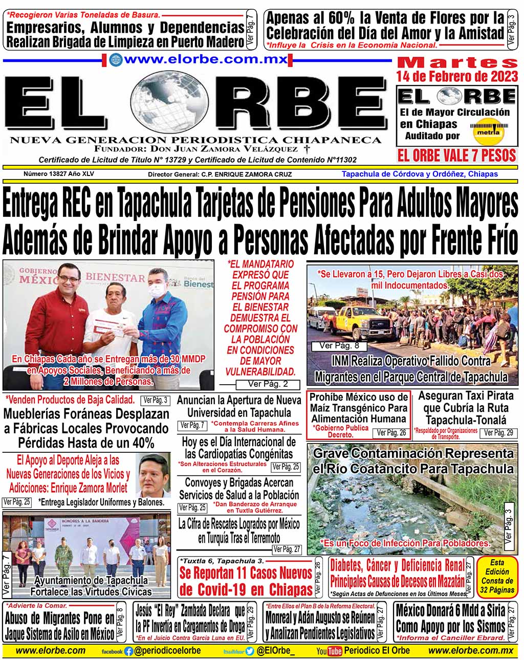 InicioPortadasFEBRERO 14 DE 2023 Portadas FEBRERO 14 DE 2023 14 febrero, 2023 0 1175 Cuota FacebookTwitterPinterestWhatsAppEmail Cuota FacebookTwitterPinterestWhatsAppEmail Artículo anteriorMéxico Registró Ingreso de 40 Millones de Personas en 2022Artículo siguienteLo Vincularon a Proceso por Pederastia RELATED ARTICLES Portadas DICIEMBRE 10 DE 2025 10 diciembre, 2025 Portadas DICIEMBRE 09 DE 2025 9 diciembre, 2025 Portadas DICIEMBRE 08 DE 2025 8 diciembre, 2025 EL ORBE AL MOMENTO: Los problemas de «Franki» Al Instante staff - 10 diciembre, 2025 0 No permitió la compra de boletos del partido México vs Portugal Leer más Eduardo Ramírez se reúne con el director general de Banobras, Jorge Mendoza Sánchez Al Instante staff - 10 diciembre, 2025 0 El gobernador presentó los avances de la carretera Palenque-Ocosingo “La Ruta de las Culturas Mayas” El gobernador Eduardo Ramírez Aguilar sostuvo una reunión de trabajo... Leer más Yazz Ramírez te invita a vivir la magia de la ChiapaNavidad 2025. Al Instante staff - 10 diciembre, 2025 0 Este sábado 13 de diciembre, en punto de las 18:00 horas, acompáñanos en esta gran caravana llena de tradición, luz y alegría para toda... Leer más Cargar más MAS Popular Los problemas de «Franki» 10 diciembre, 2025 Eduardo Ramírez se reúne con el director general de Banobras, Jorge Mendoza Sánchez 10 diciembre, 2025 Yazz Ramírez te invita a vivir la magia de la ChiapaNavidad 2025. 10 diciembre, 2025 ASISTE YAMIL MELGAR A ENCUENTRO DE SEGURIDAD ENCABEZADO POR HARFUCH 10 diciembre, 2025 Cargar más