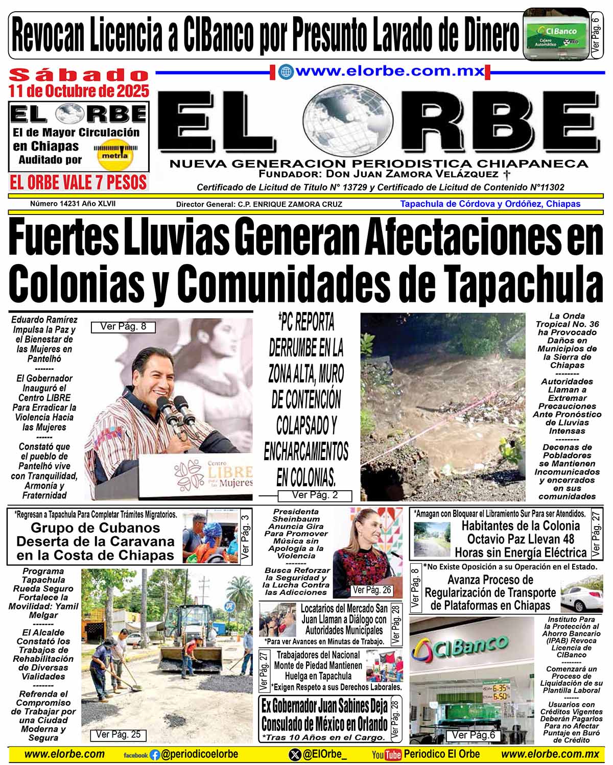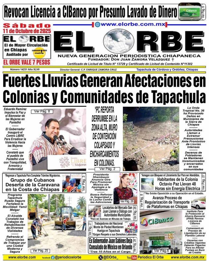 InicioPortadasOCTUBRE 11 DE 2025 Portadas OCTUBRE 11 DE 2025 11 octubre, 2025 0 162 Cuota FacebookTwitterPinterestWhatsAppEmail Cuota FacebookTwitterPinterestWhatsAppEmail Artículo anteriorEn Chiapa de Corzo aprehenden a pederasta: FGEArtículo siguienteRunners RELATED ARTICLES Portadas NOVIEMBRE 15 DE 2025 15 noviembre, 2025 Portadas NOVIEMBRE 14 DE 2025 14 noviembre, 2025 Portadas NOVIEMBRE 13 DE 2025 13 noviembre, 2025 EL ORBE AL MOMENTO: Tapachula FC vuelve a la senda del triunfo con una goleada ante Cañoneros Al Instante staff - 15 noviembre, 2025 0 El conjunto de Tapachula FC se reencontró con la victoria de forma contundente tras imponerse por marcador de 6-0 al conjunto de Cañoneros, en... Leer más Fuerte choque en el tramo Tapachula–Tuxtla Chico deja un lesionado Al Instante staff - 15 noviembre, 2025 0 15 de noviembre de 2025, Tapachula, Chiapas.— Minutos antes de las 19:00 horas de este sábado se registró un aparatoso accidente vehicular en el... Leer más SSP y FGE aprehenden a presunto responsable de robo con violencia agravado Al Instante staff - 15 noviembre, 2025 0 - Por hechos ocurridos el 9 de noviembre en Ixtapangajoya La Secretaría de Seguridad del Pueblo y la Fiscalía General del Estado ejecutaron una orden... Leer más Cargar más MAS Popular Tapachula FC vuelve a la senda del triunfo con una goleada ante Cañoneros 15 noviembre, 2025 Fuerte choque en el tramo Tapachula–Tuxtla Chico deja un lesionado 15 noviembre, 2025 SSP y FGE aprehenden a presunto responsable de robo con violencia agravado 15 noviembre, 2025 SSP y FGE aprehenden a presunto responsable de violación agravada 15 noviembre, 2025 Cargar más