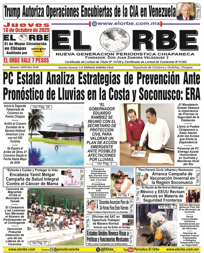 Tapachula, Chiapas.– En el marco de la estrategia de seguridad impulsada por el Gobierno del Estado que encabeza el gobernador Eduardo Ramírez Aguilar, el...