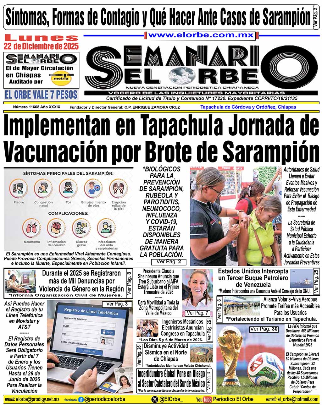 Tapachula, Chiapas a diciembre de 2025.— Alrededor de las 22:34 horas del 21 de. Diciembre del año en curso, se registró un accidente vehicular sobre...