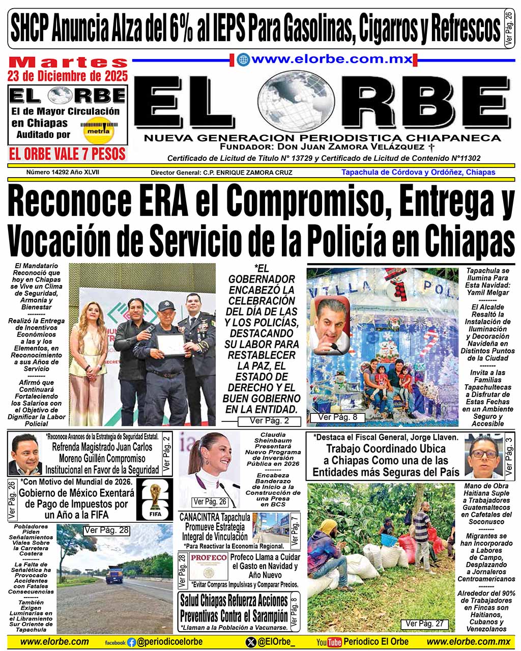 Tapachula, Chiapas; 20 de diciembre de 2025.— El presidente municipal de Tapachula, Yamil Melgar, informó que como parte de las acciones de esta temporada...