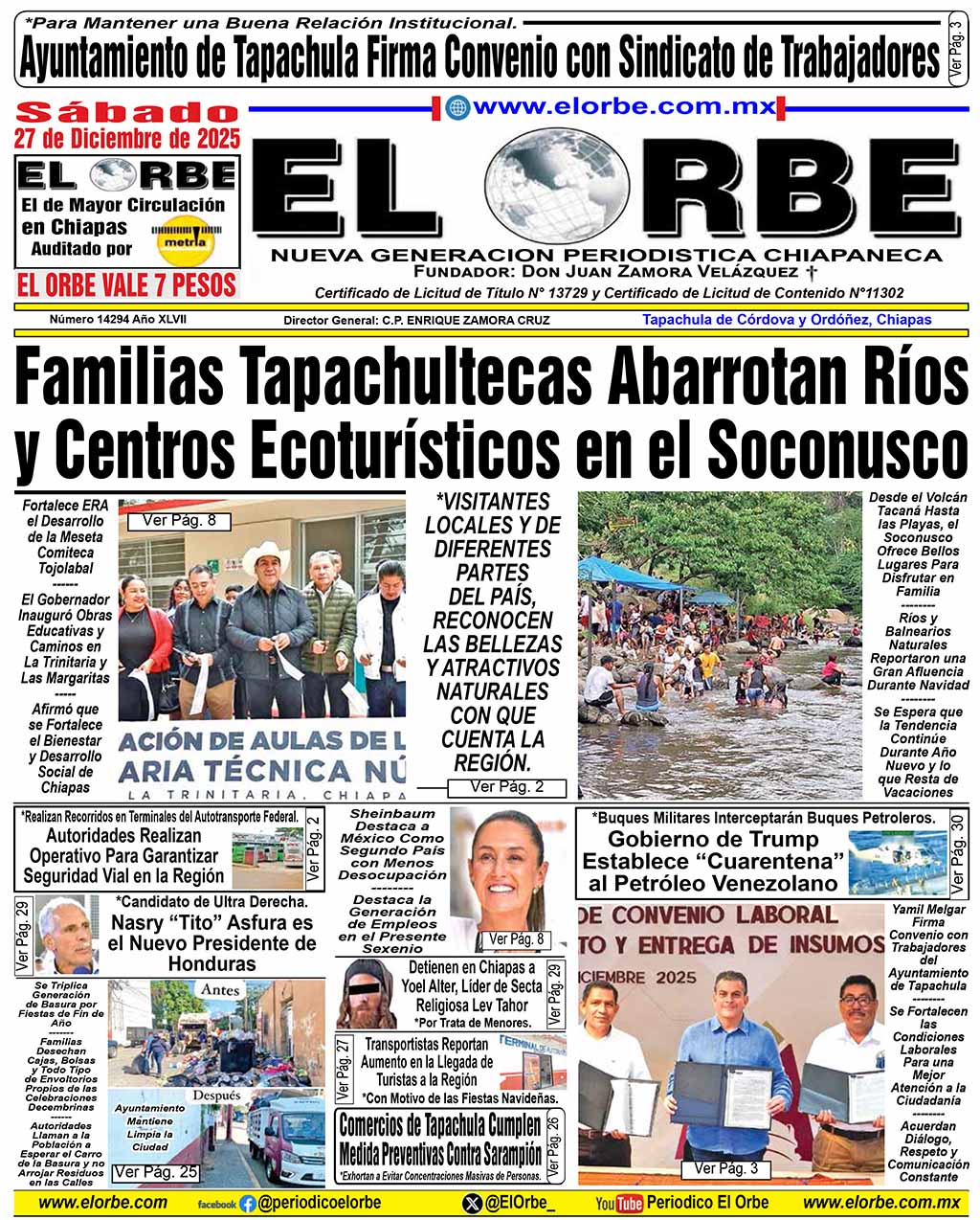26, Diciembre del 2025.- Tapachula, Chiapas.— El presidente municipal, Yamil Melgar, encabezó la firma del convenio laboral con el Sindicato Único de Trabajadores al...