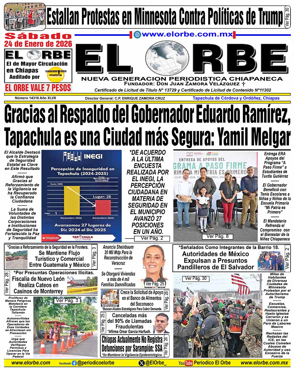 «TAPACHULA PASÓ DEL 1ER LUGAR AL 28 EN MATERIA DE PERCEPCIÓN DE INSEGURIDAD, GRACIAS AL GOBERNADOR EDUARDO RAMÍREZ»: YAMIL MELGAR.