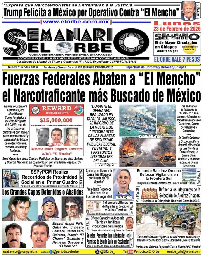 InicioPortadasFEBRERO 23 DE 2026 Portadas FEBRERO 23 DE 2026 23 febrero, 2026 0 20 Cuota FacebookTwitterPinterestWhatsAppEmail Cuota FacebookTwitterPinterestWhatsAppEmail Artículo anteriorSheinbaum Llama a la Calma Tras Bloqueos por Muerte de “El Mencho“Artículo siguienteFlor Ballinas Celebra su Cumpleaños en Playa Linda RELATED ARTICLES Portadas FEBRERO 22 DE 2026 22 febrero, 2026 Portadas FEBRERO 21 DE 2026 21 febrero, 2026 Portadas FEBRERO 20 DE 2026 20 febrero, 2026 EL ORBE AL MOMENTO: Conferencia de prensa matutina en vivo. Lunes 23 de febrero 2026 | Presidenta Claudia Sheinbaum Al Instante staff - 23 febrero, 2026 0 Te invitamos a seguir la transmisión en vivo de la conferencia matutina: #MañaneradelPueblo, encabezada por la Dra. Claudia Sheinbaum Pardo, Presidenta Constitucional de los... Leer más Flor Ballinas Celebra su Cumpleaños en Playa Linda Al Instante staff - 23 febrero, 2026 0 Playa Linda fue el escenario perfecto para que Flor Ballinas Moreno celebrara un año más de vida, rodeada del cariño de su familia y... Leer más Todas las clases en normalidad. Al Instante staff - 22 febrero, 2026 0 Leer más Cargar más MAS Popular Fuerzas Federales Abaten a “El Mencho” el Narcotraficante más Buscado de México 23 febrero, 2026 Caída de Líder del CJNG Desata Ola De Violencia 23 febrero, 2026 Un Domingo de Miedo; Comercios Cerrados y Transporte Suspendido 23 febrero, 2026 SSPyPCM Realiza Recorridos de Proximidad Social en el Primer Cuadro 23 febrero, 2026 Cargar más