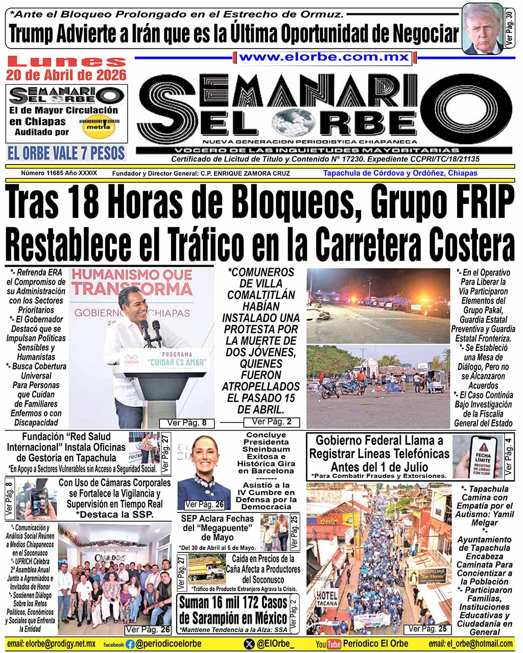 El pasado jueves caminé por el parque central de Tapachula, al pasar junto al Kiosko advertí que,...