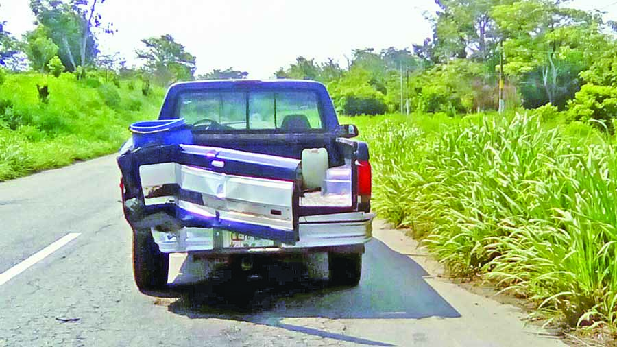 Al filo de las 10 de la mañana, sobre el tramo carretero Escuintla-Villa Comaltitlán, se desplazaba una camioneta tipo Pick-Up, Ford con placas de circulación CW-78093, a la altura del kilómetro 220, un tráiler lo golpeó por alcance y se dio a la fuga, una persona estaba lesionada y fue llevada al Hospital Regional de Huixtla, para su atención médica.