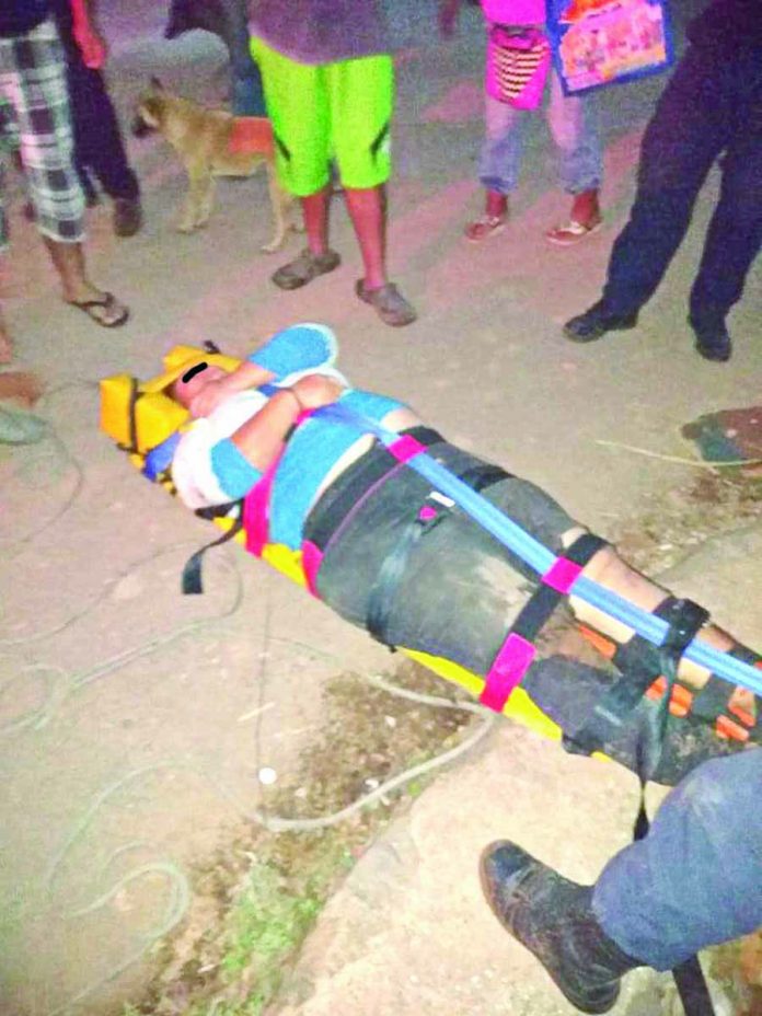 Acudieron los Bomberos de Tapachula, paramédicos de Protección Civil y del grupo SAE, quienes brindaron los primeros auxilios a la víctima, presentaba una probable fractura en el tobillo y tuvo que ser inmovilizada.